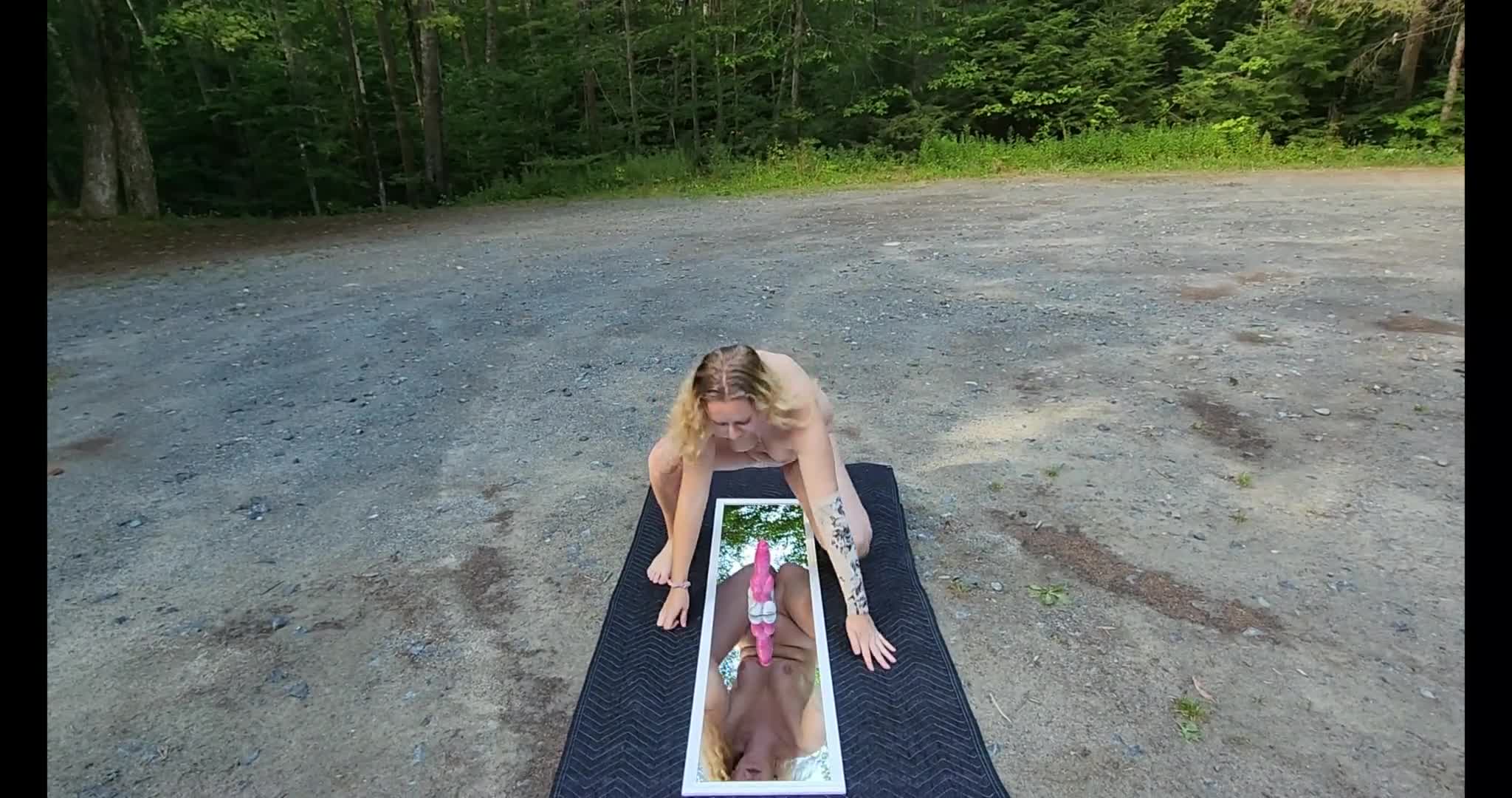 2048.hk@Knotty Little Blonde Slut Mirror Fucks a Knotty Dildo in Public Parking Lot